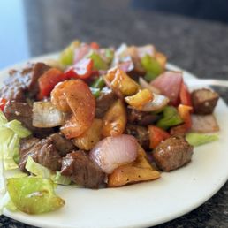 Ordered the salted fish & chicken fried rice, steak cubes & pepper salad, salt & pepper chicken wings. Nice big portions that were really good and flavorful. Interior was nice and clean. It was connected to their restaurant Lollicup. Great service.